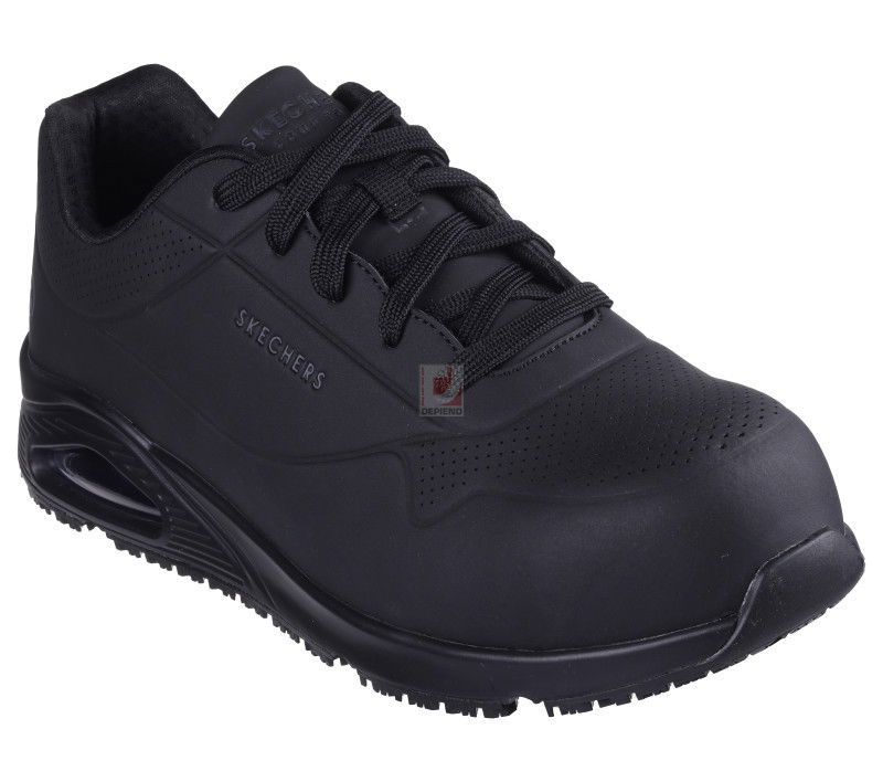Frissítsd fel a munkaidős stílusodat biztonságban és kényelemben a Skechers Work™: Uno SR - Doltin cipőben. Ez a sportos stílusú biztonsági cipő sima, perforált durabuck felsőrésszel, Skech-Air® légzsákos középtalppal, szúrásálló talpbetéttel és olajálló csúszásmentes talppal rendelkezik.