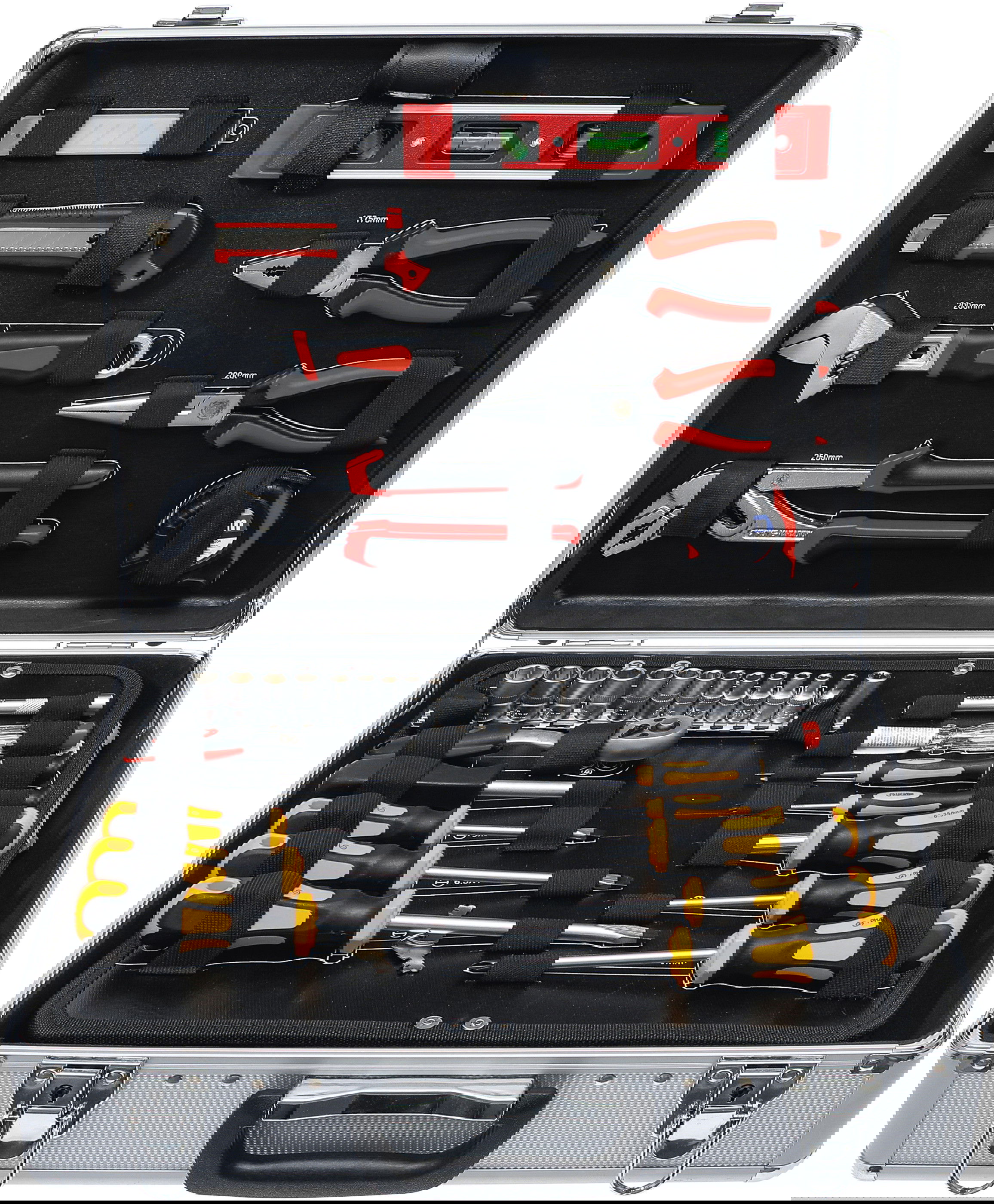 - 129 részes mérnöki felszereltségű szerszámtáska, alumínium kofferben, lapozható betéttel, zárható kivitelben.