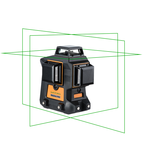 A Geo6X SP készlet zöld korlátlan felhasználási lehetőséget biztosít: az egy vízszintes és 2 függőleges 360°-os lézervonal számos új alkalmazást tesz lehetővé.