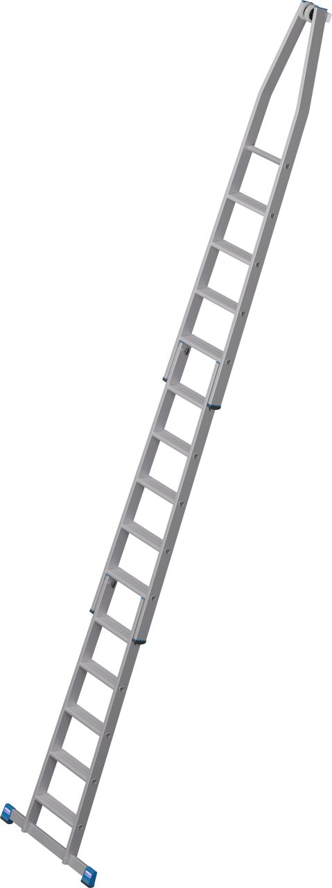 • A létra felső tagja fali vezetőgörgőkkel és kopásálló, puha gumi anyagú érintkező blokkal, ékkivágással, mely házsarkokra és ablakprofilokra helyezhető.