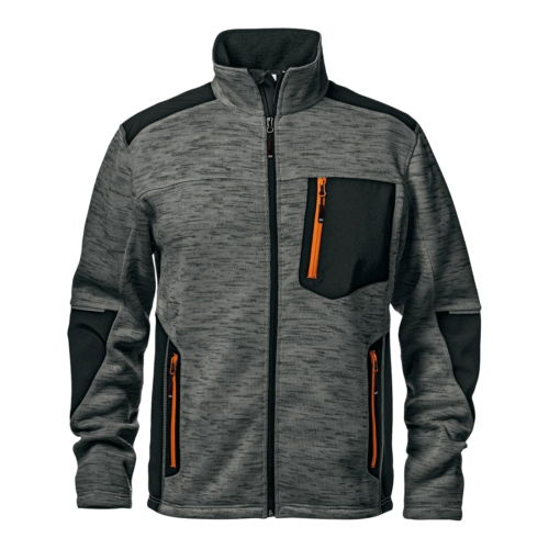 Pulóver középső cipzárral, Softshell szövet mellkasi zsebbel, két cipzárral záródó oldalzsebbel és polár bélésű gallérral. Jól láthatósági betétek. Belső húzózsinór az alsó szegélynél.
